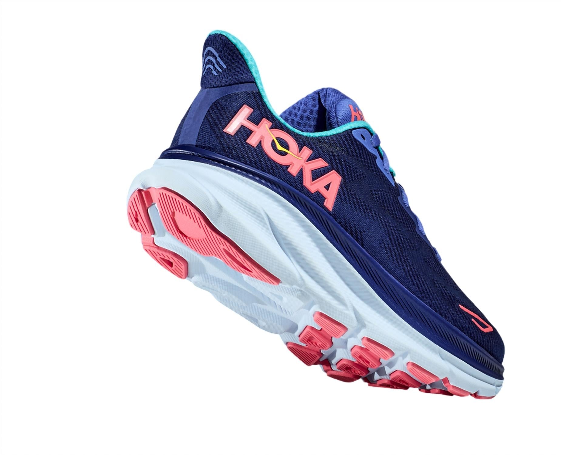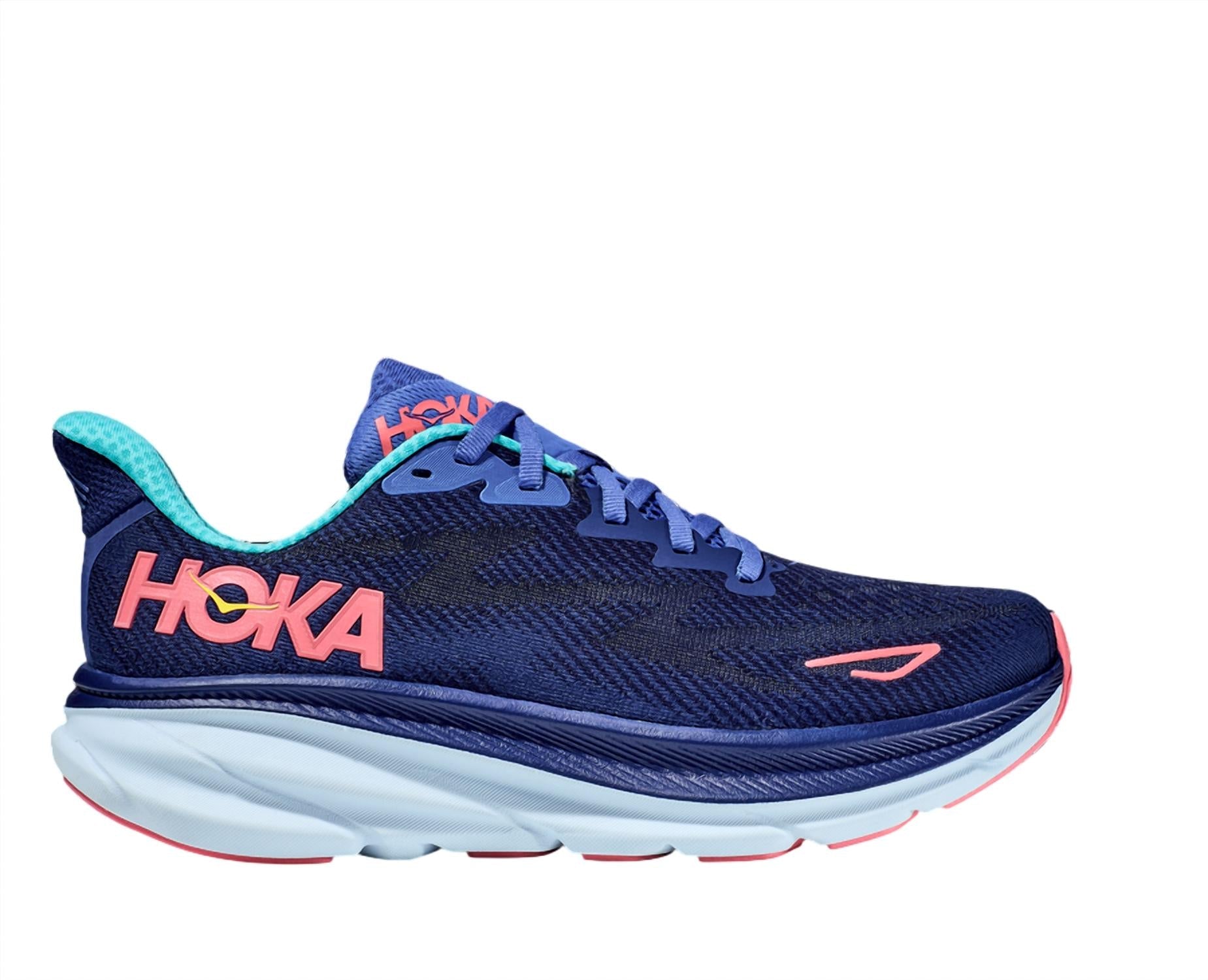 Stylish, comfortable and supportive. These athletic sneakers check all of the boxes. Introducing the Women's Clifton 9 Running Shoes by Hoka, designed to provide exceptional comfort and performance. Available in a striking Bellwether Blue and Ceramic colorway, these athletic shoes feature a round toe shape for optimal support. Ideal for adult women seeking a reliable running companion. Crafted with attention to detail, these shoes are an excellent choice for both everyday wear and athletic pursuits.