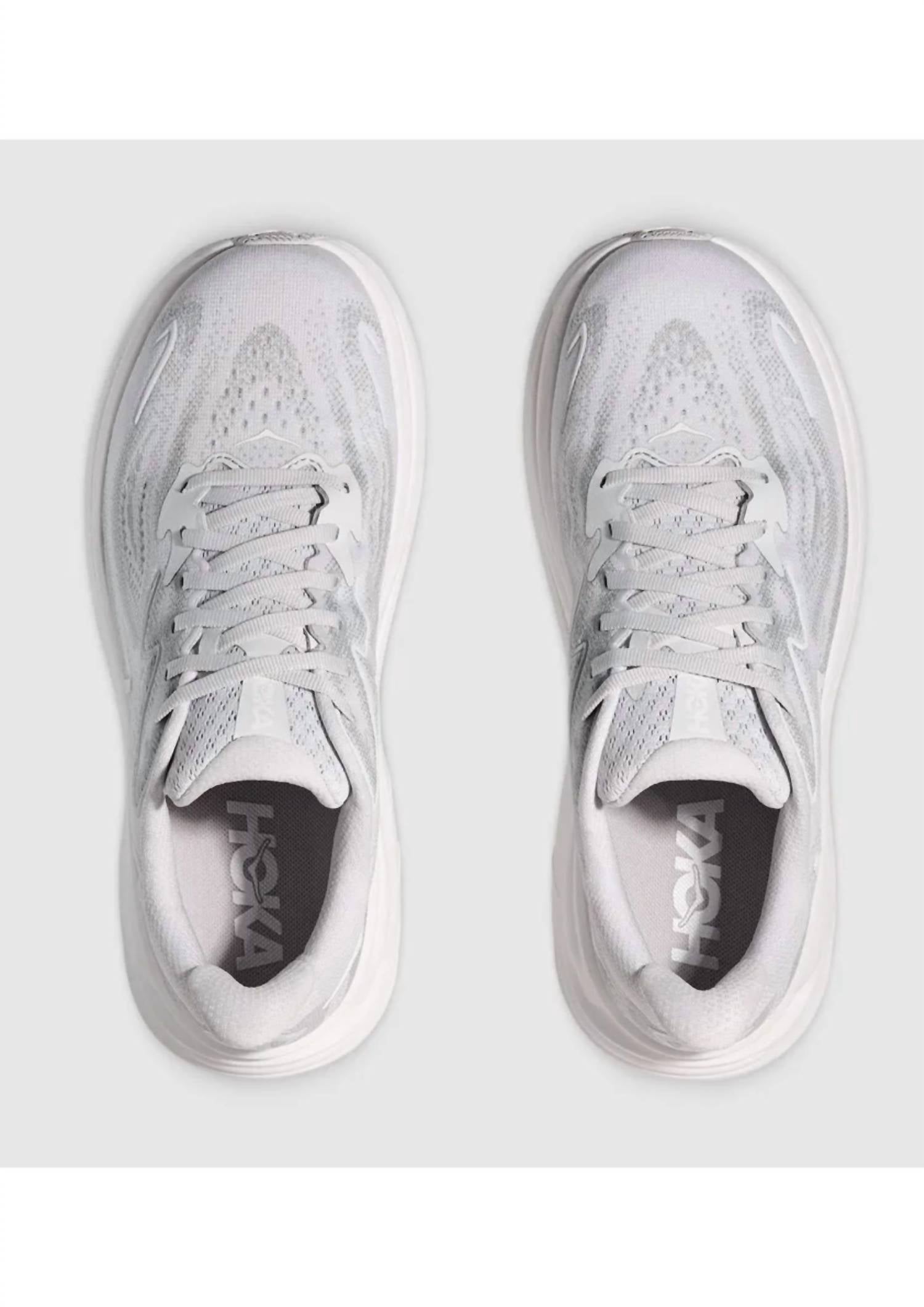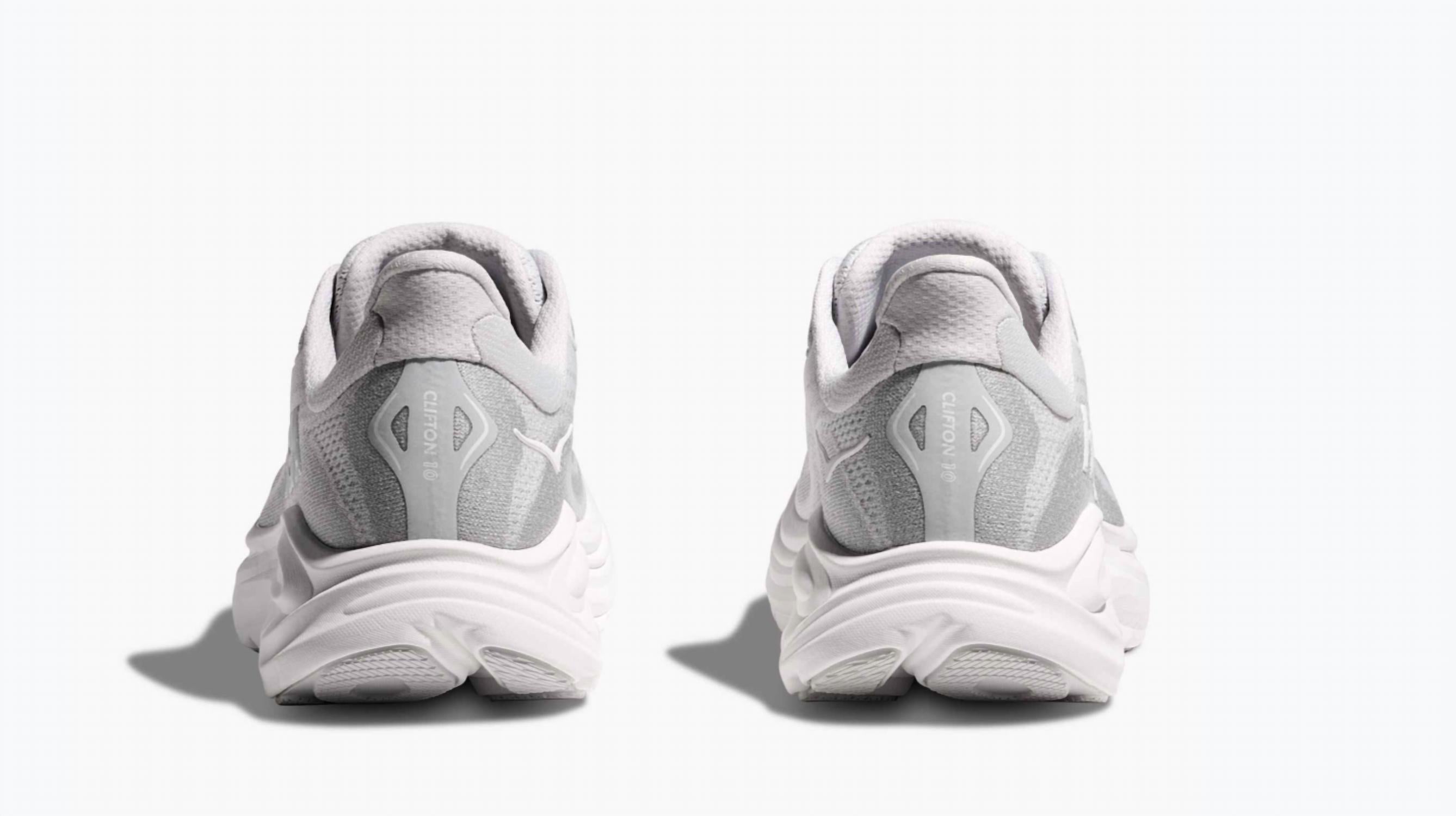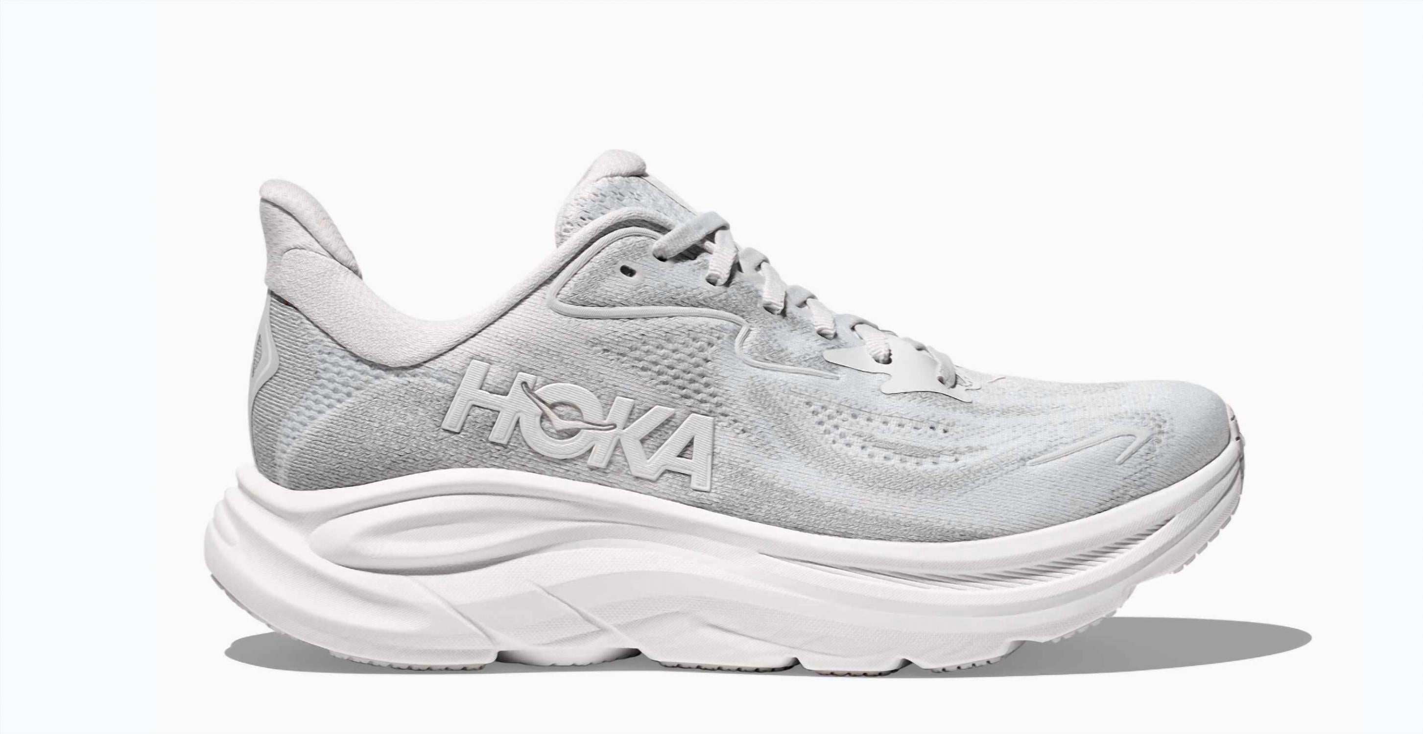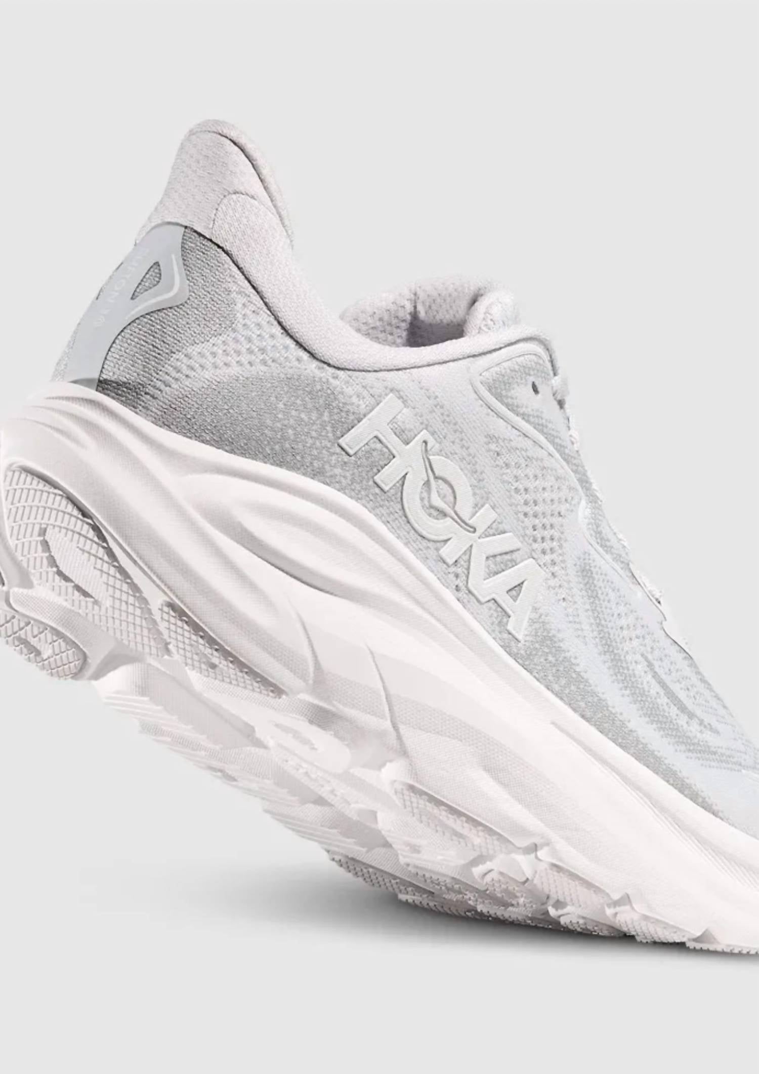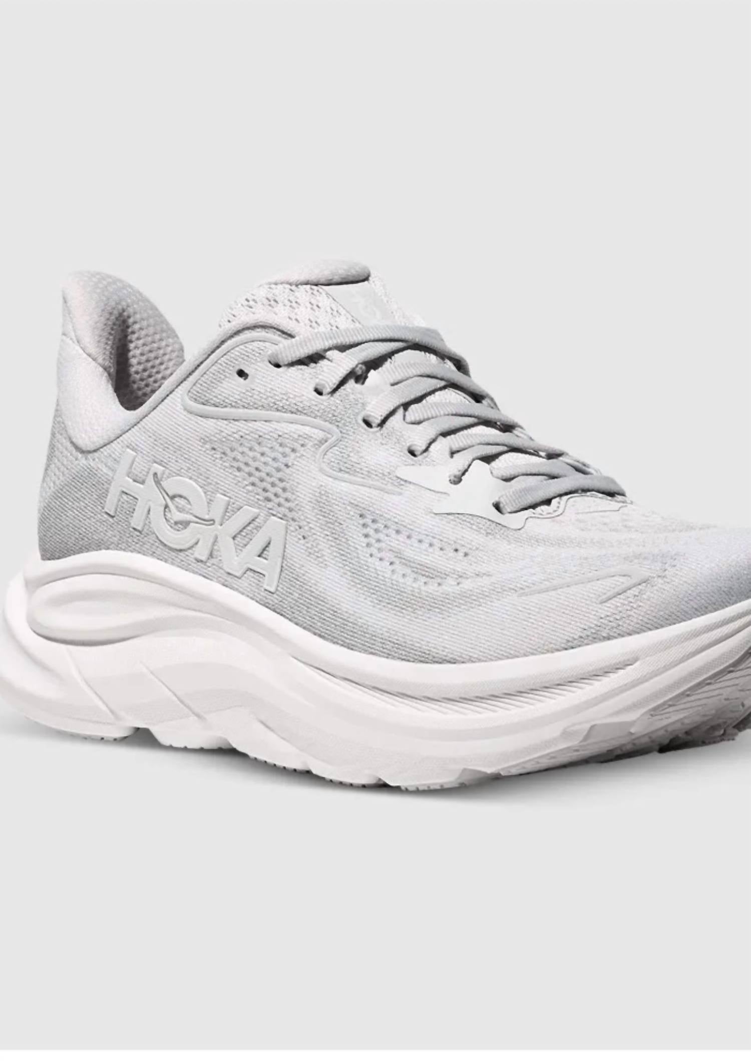 Workout in style with these adorable athletic sneakers. Step into superior cushioning with the Women's Clifton 10 Running Shoes by Hoka, a staple for everyday miles. This next-gen trainer, in a sophisticated Cosmic Grey/Stardust hue, boasts a 3mm additional heel-to-toe drop for optimal plush performance. Features include a breathable jacquard knit upper, reflective details, CMEVA midsole, and a double-lace lock for stability and ease. Ideal for both running and walking, these shoes combine style and comfort, earning the APMA Seal of Acceptance for promoting foot health.