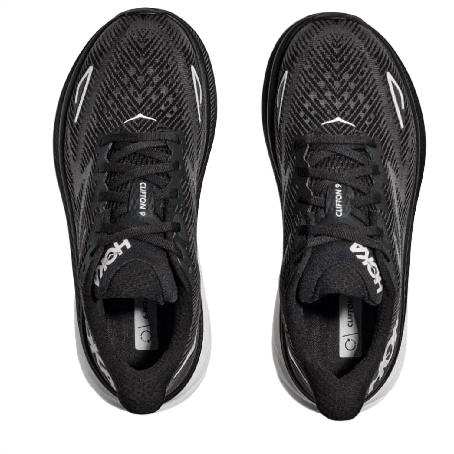 Meet the Women's Clifton 9 Running Shoes by Hoka, an innovative addition to the celebrated Clifton family. These sneakers feature a 2mm boosted stack height for an elevated platform, perfect for tackling challenging miles. Made from vegan-friendly materials, including recycled content and polyester laces, they offer a softer feel and lighter weight while remaining environmentally conscious. The round toe design and classic Black/White color make these a stylish and reliable choice for every runner.