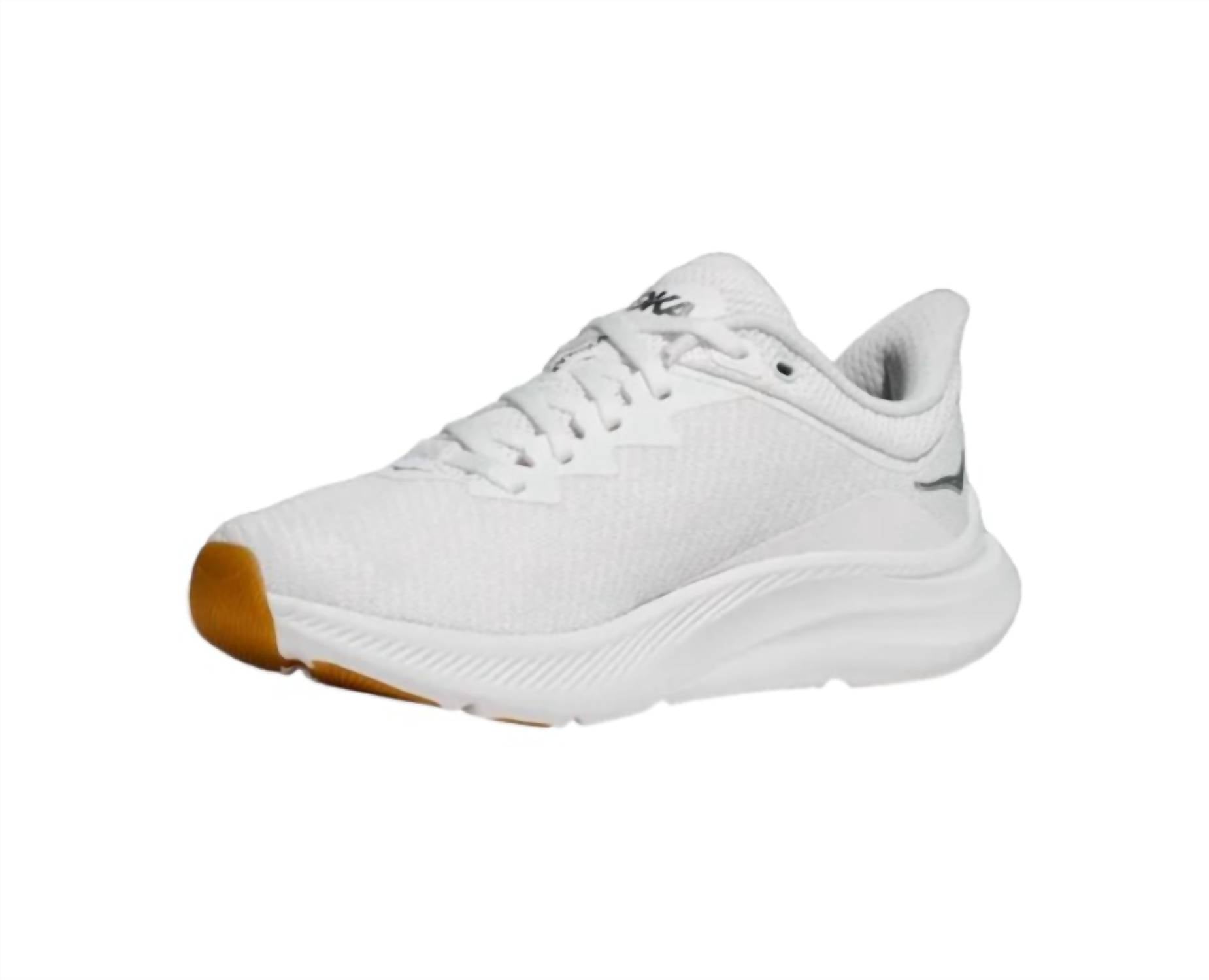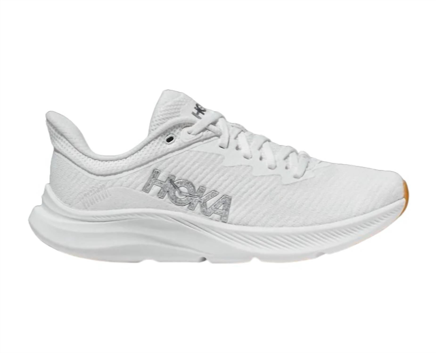 Workout in style with these adorable athletic sneakers. Step into effortless style and functionality with the Women's Solimar Shoes by Hoka, perfect for everyday running and training in Sunlit Ocean / Citrus Glow. Crafted from stretchy, recycled material, these trainers feature a balanced midsole, compression-molded foam, and anatomical Achilles construction for a sublime ride. Designed with a high abrasion rubber outsole and a molded EVA sockliner, this vegan-friendly silhouette ensures comfort and durability. The extended heel pull makes it easy to slip on and off, blending convenience with top-tier athletic performance.