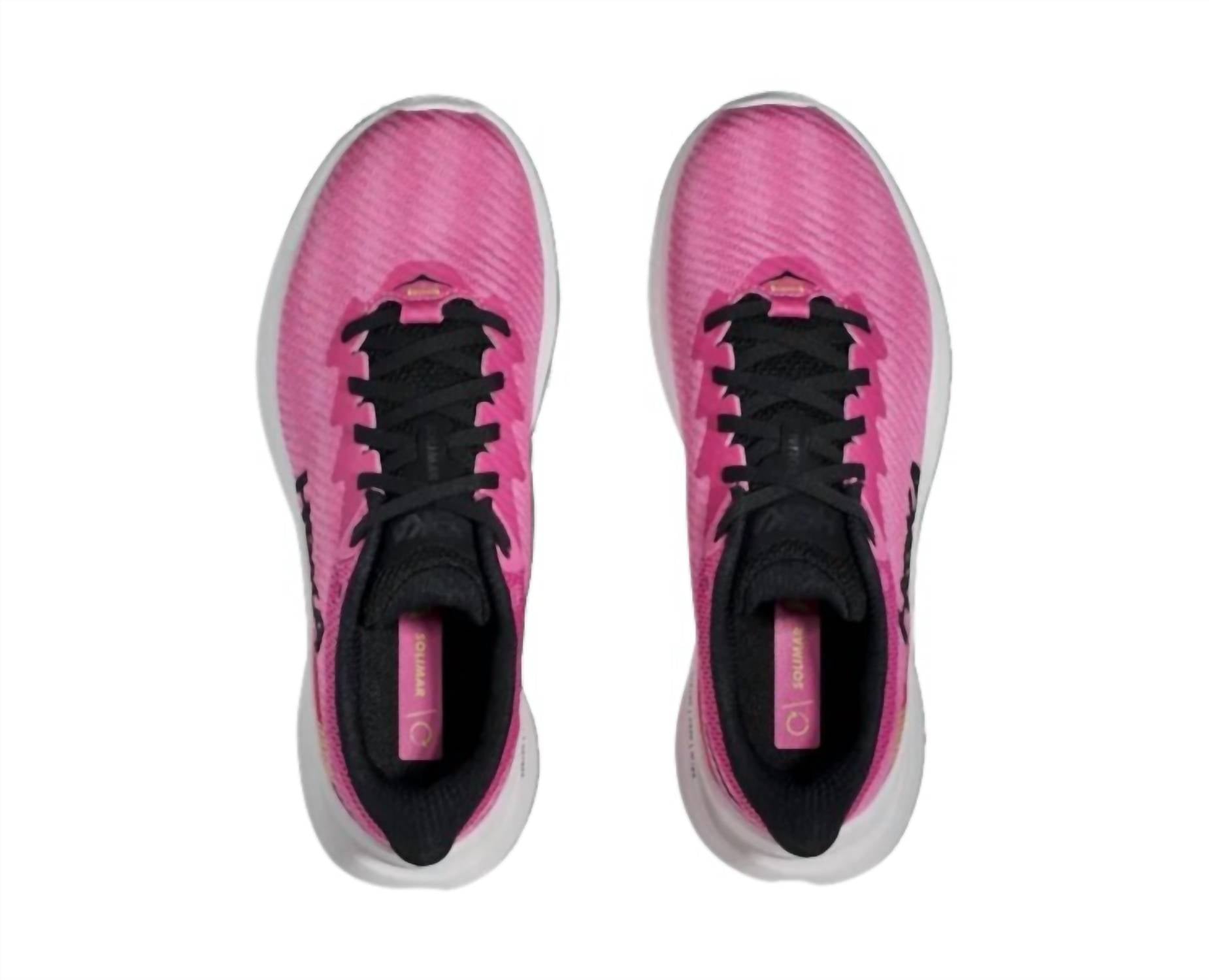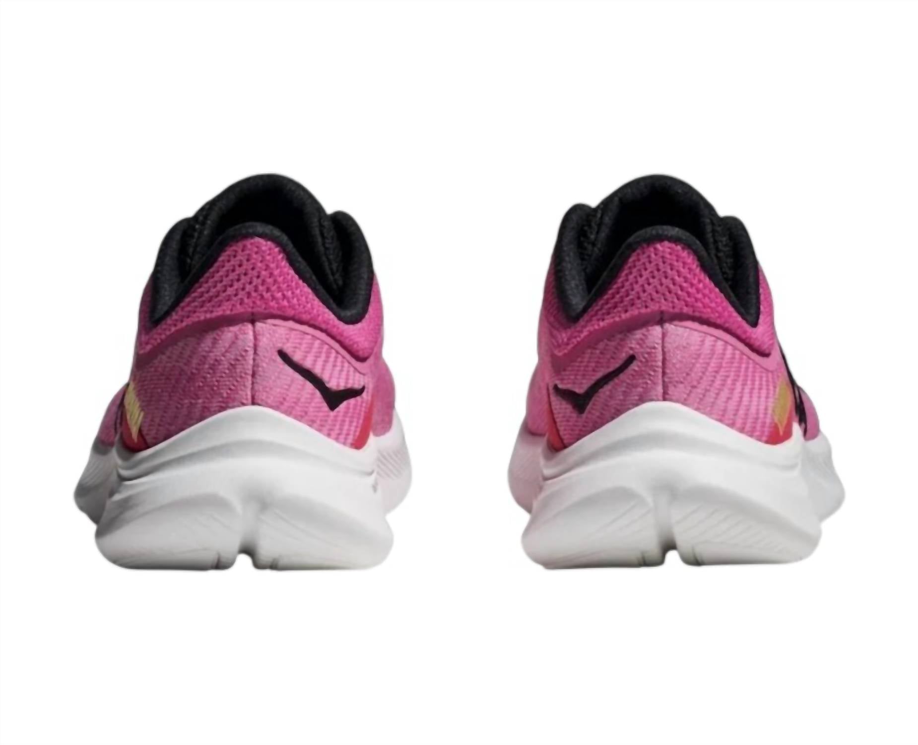 Workout in style with these adorable athletic sneakers. Step into effortless style and functionality with the Women's Solimar Shoes by Hoka, perfect for everyday running and training in Sunlit Ocean / Citrus Glow. Crafted from stretchy, recycled material, these trainers feature a balanced midsole, compression-molded foam, and anatomical Achilles construction for a sublime ride. Designed with a high abrasion rubber outsole and a molded EVA sockliner, this vegan-friendly silhouette ensures comfort and durability. The extended heel pull makes it easy to slip on and off, blending convenience with top-tier athletic performance.