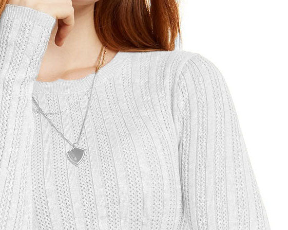 Hooked Up By Iot Juniors' Pointelle Sweater White Size Large