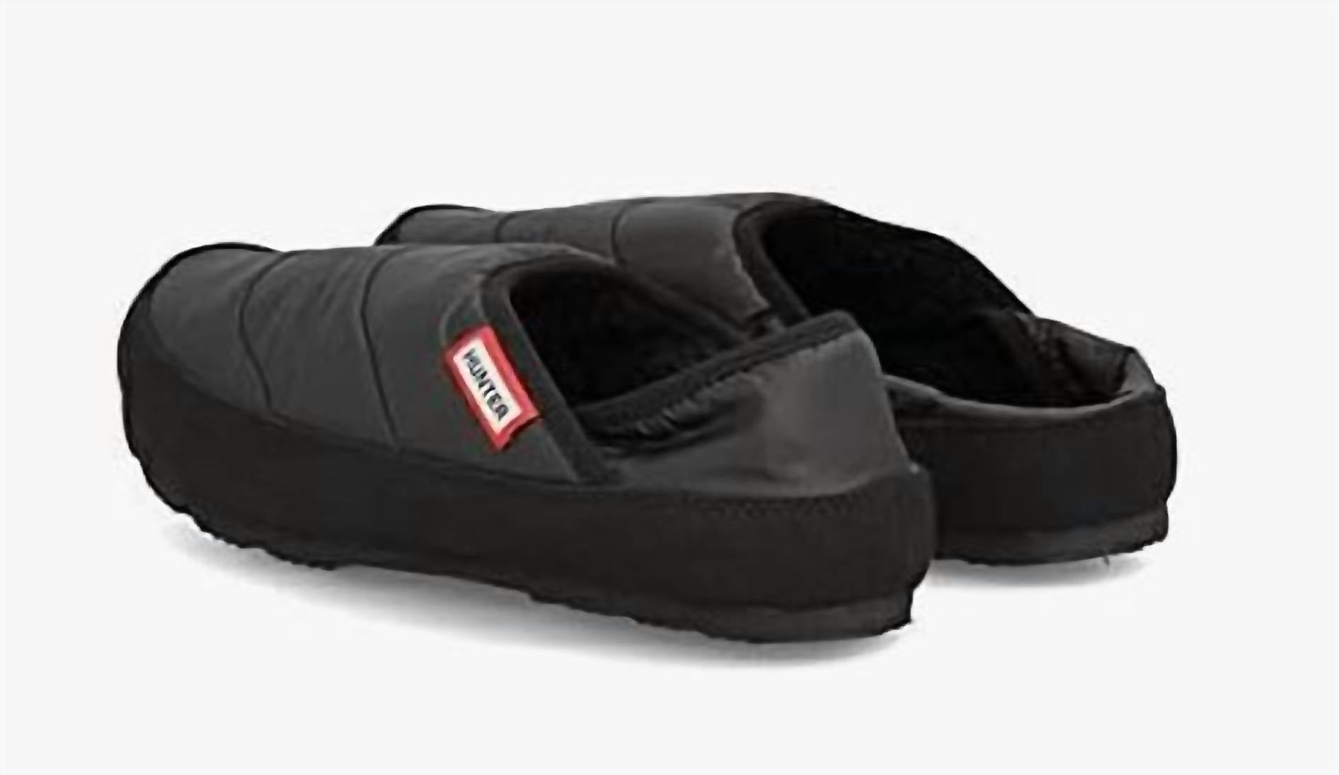 Slip into these, we promise you won't regret it. Step into cozy comfort with the Women's Puffer Slippers by HUNTER, crafted in a chic black color. Made from a soft cotton blend, these slippers provide warmth and style for any casual day at home. Designed with women's sizing in mind, they offer a snug and comfortable fit for adult wearers. These slippers are a must-have addition to your lounge wear collection.