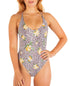 Stand out in this stunning Hurley swimsuit. The juniors' one-piece floats soft flowers across an animal print| while a strappy back and cheeky fit add a touch of daring.| Removable cups | Limited bottom coverage; cheeky fit| Tie closure at back; over-the-shoulder crisscross straps| Scoop neckline| Allover mixed print