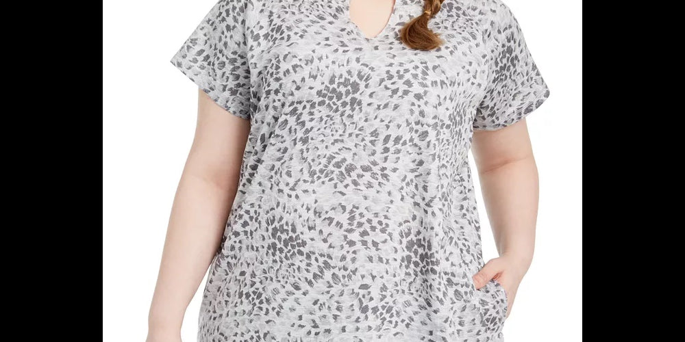 All-Over Animal Print|Split neckline|Pockets at hips|Polyester/rayon/spandex|Machine washable