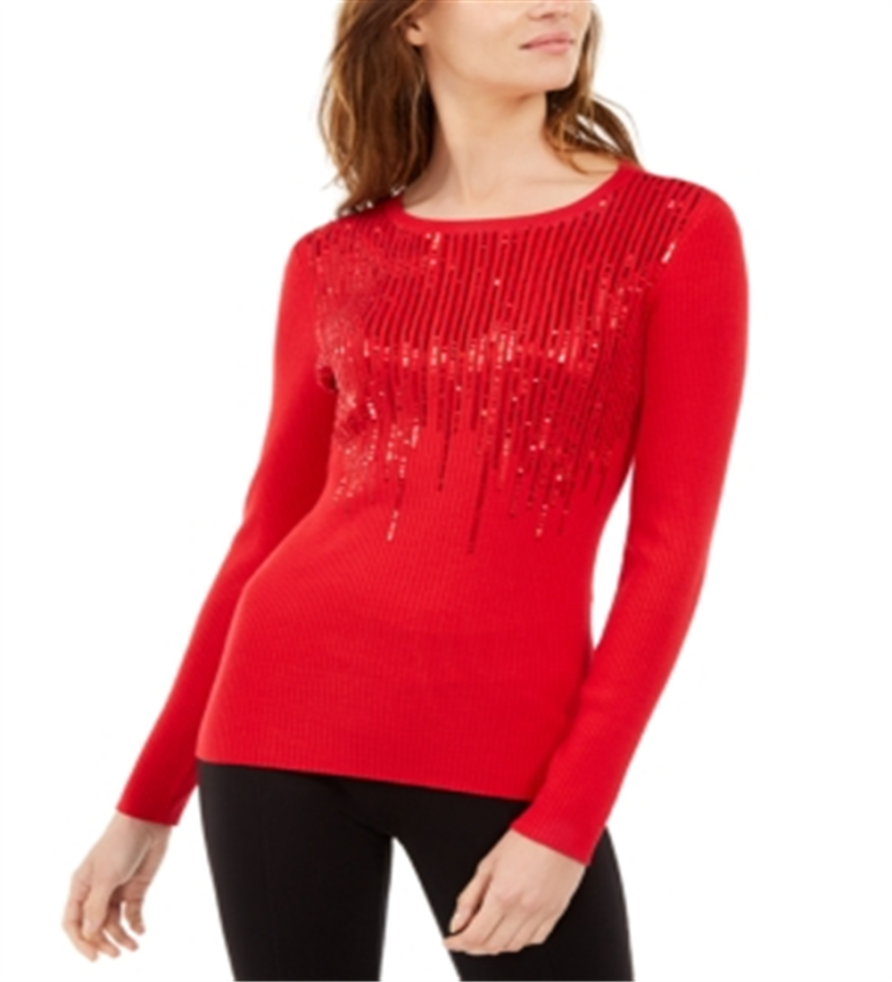IINC International Concepts Women's Solid Long Sleeve Jewel Neck Blouse Top Red Size X-Small