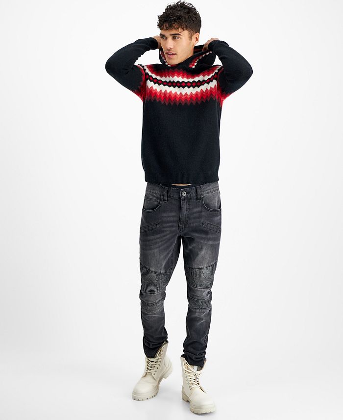 INC International Concepts Men's Cashmere Geo Stripe Hoodie Black Size Large