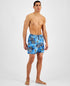 INC International Concepts offers a mix of whimsy and wild styling for your beach-day look with the zebra and paisley motifs across these quick-dry board shorts|