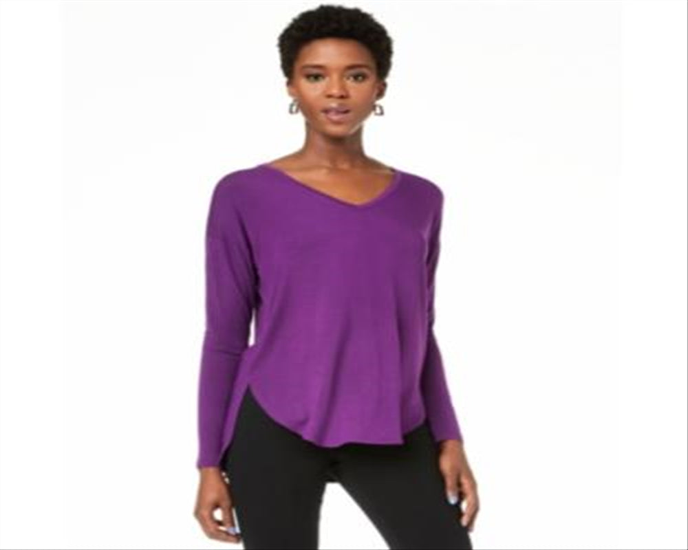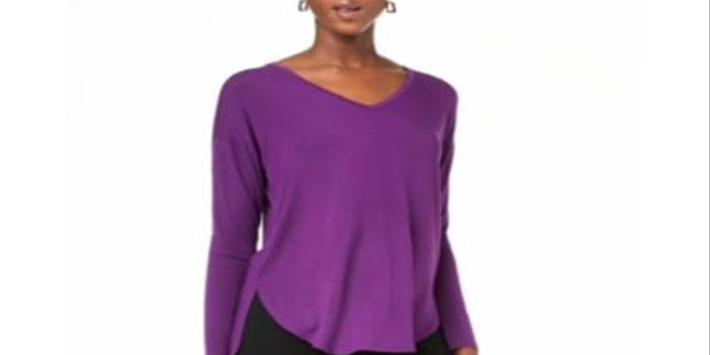 INC International Concepts V-Neck Curved-Hem T-Shirt Purple Paradise M