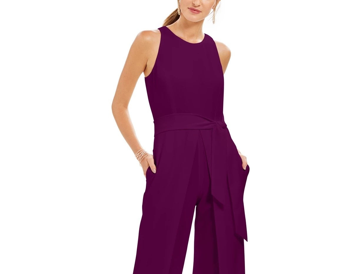 INC International Concepts Women's Belted Flyaway-Leg Jumpsuit Wine Size 2