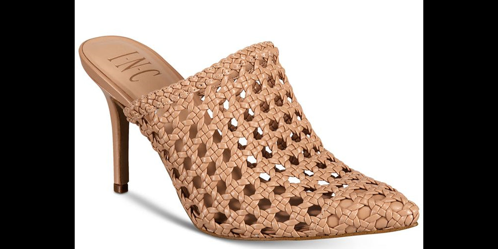 3-1/4 stiletto heel| Pointed-toe slip-on mules| Allover woven details at upper