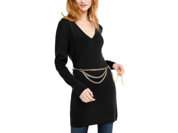 INC International Concepts Women's Chain-Belt Sweater Tunic Deep Black Size Small