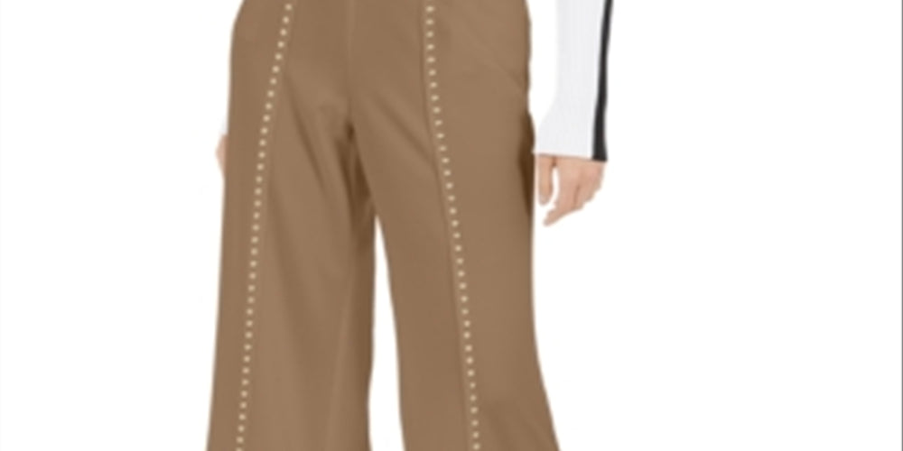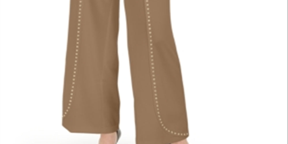 INC International Concepts Women's Embellished Wide Leg Evening Pants Beige Size Large