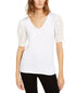INC International Concepts Women's Eyelet Puff Sleeve Top White Size Petite