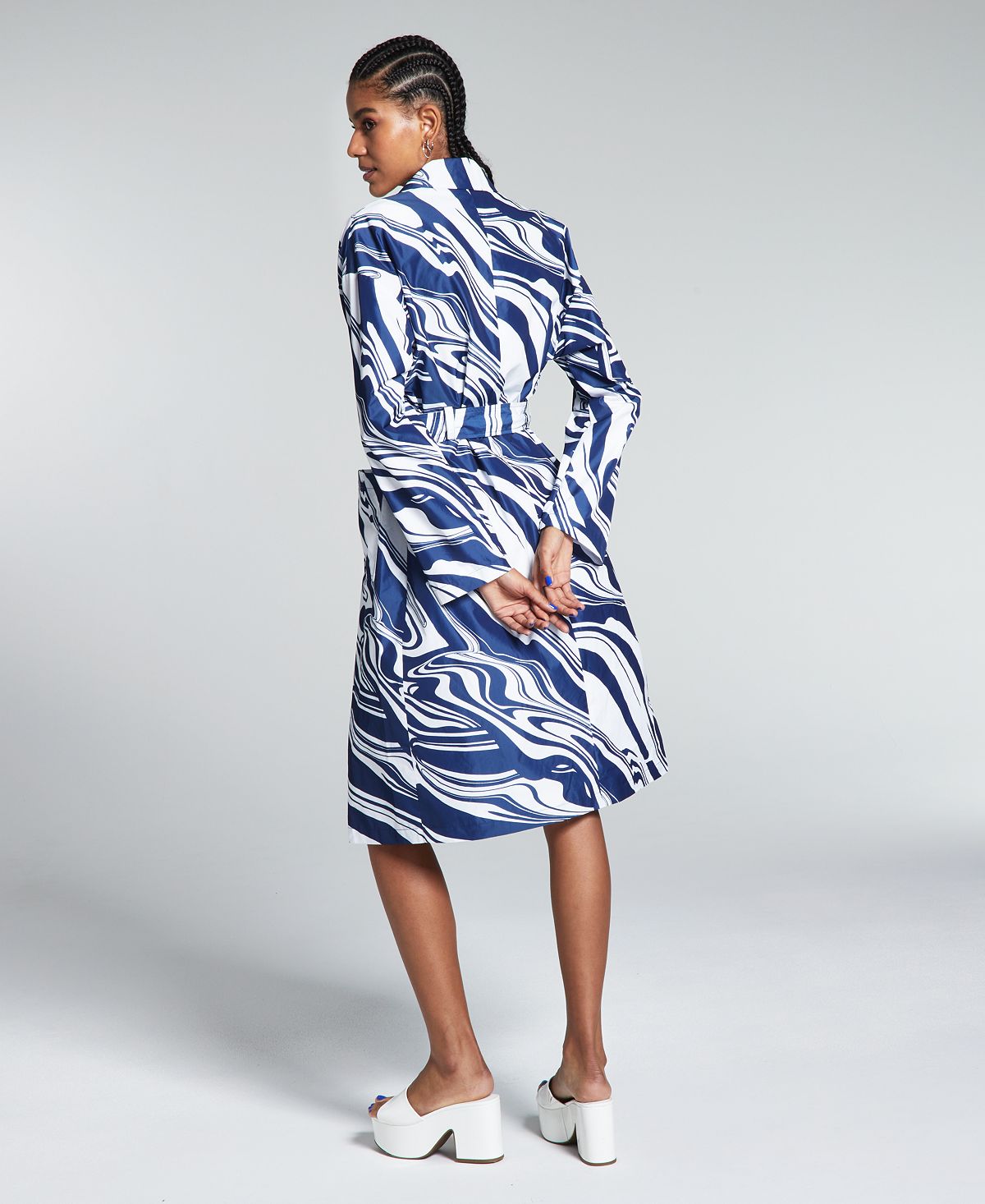 An outerwear refresh. This bold and fabulous jacket from I.N.C. International Concepts® has a lightweight design that always makes an entrance. | Approx. length; 43-1/2; relaxed fit | Open collar; hidden snap closures | Patch pockets| Lined | | Polyester/nylon; lining; polyester