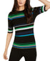 INC International Concepts Women's Metallic Striped Ribbed Sweater Black Size XS