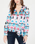 INC International Concepts Women's Petite Printed Faux-Wrap Top Pink/Black/Blue Size PS/M