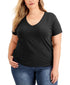 INC International Concepts Women's Plus Size Cotton V-Neck Top Black Size 1X