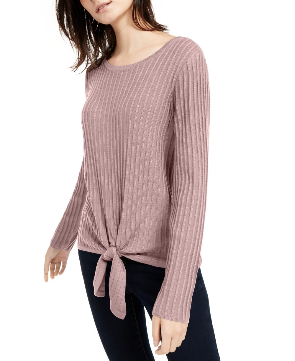 INC International Concepts Women's Ribbed Knotted Sweater Pink Size Small
