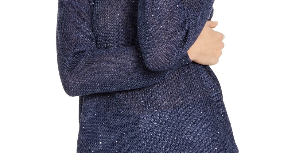 INC International Concepts Women's Sequin Cutout Turtleneck Sweater Navy Size XX-Large