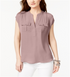 INC International Concepts Women's Short Sleeve V Neck Top Pink Size Large