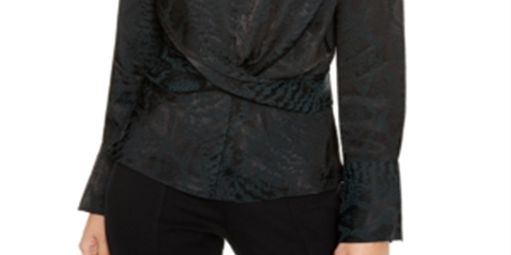 INC International Concepts Women's Snake Print Twist Front Top Green Snake Size X-Small