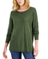 INC International Concepts Women's Step Hem Long Sleeve Boatneck Sweater Green Size Medium
