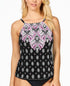 Island Escape Women's White Sands Cali Printed Tankini Top Swimsuit Black