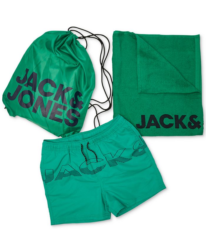 Jack & Jones Men's 3 Pc Swim Trunks Towel & Drawstring Beach Bag Set Green Size Medium