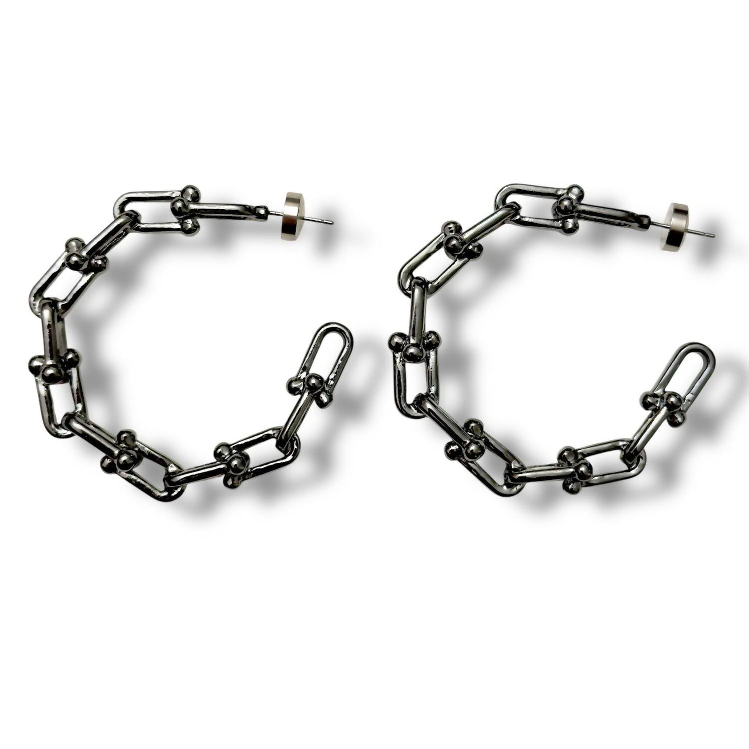 Introducing the Women's Grit Hoop Earrings by Jagged Halo Jewelry, combining strength with timeless style. These earrings are crafted from gold-filled metal with a 1.25” diameter and finished in yellow gold, black rhodium, or silver. They feature a post-back closure with hypoallergenic posts for comfort. To maintain their shine, avoid direct contact with perfumes or lotions and wipe clean with a soft cloth.
