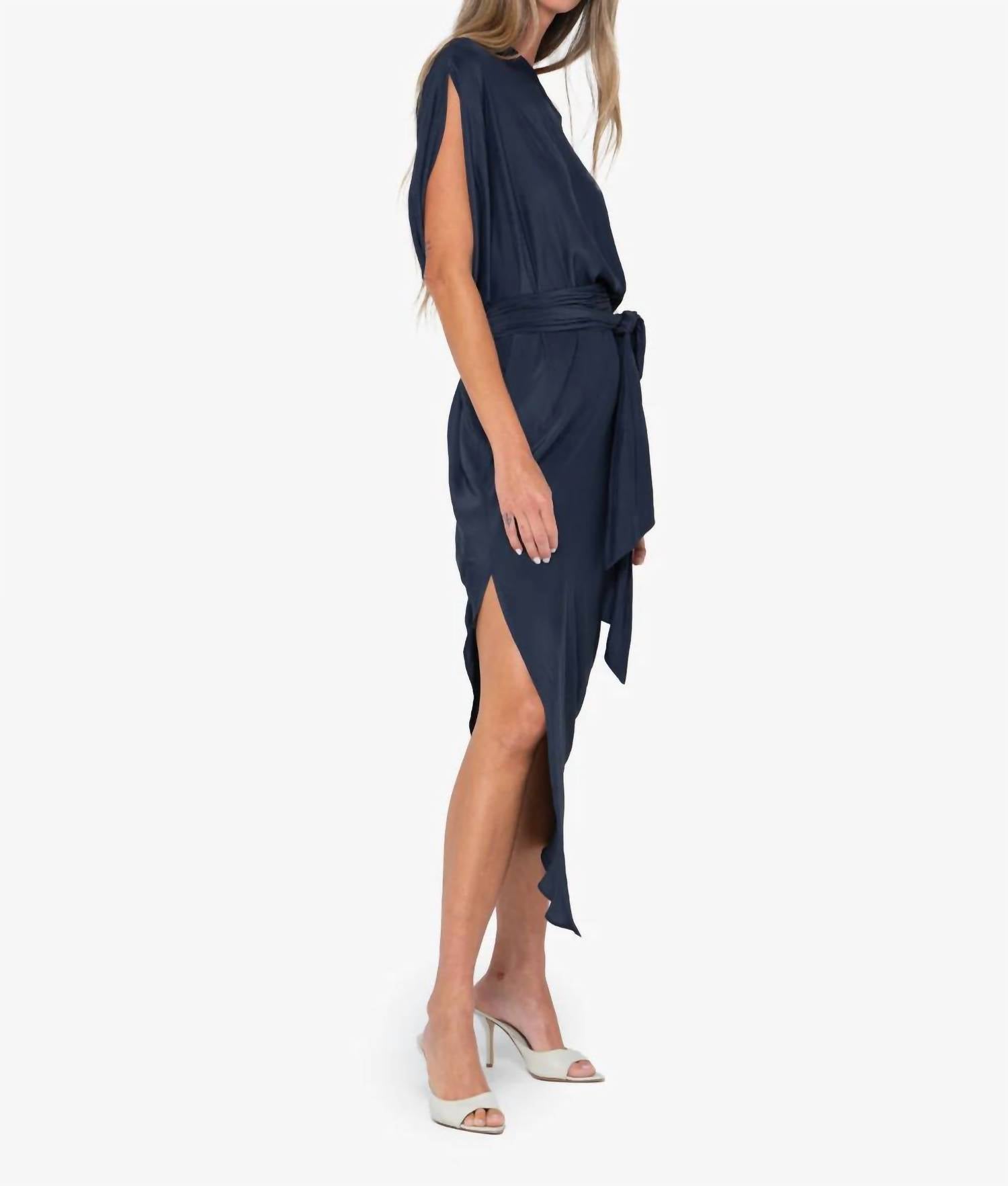 Just add slides or mules and you are good to go. Introducing the Mariah Dress by JBQ, a striking black midi piece with a modern a-symmetrical design. The dress features a sleek side zipper for easy wear. Ideal for both casual and formal occasions, this dress exemplifies timeless elegance. Made with the utmost attention to detail, it is a chic addition to any wardrobe.