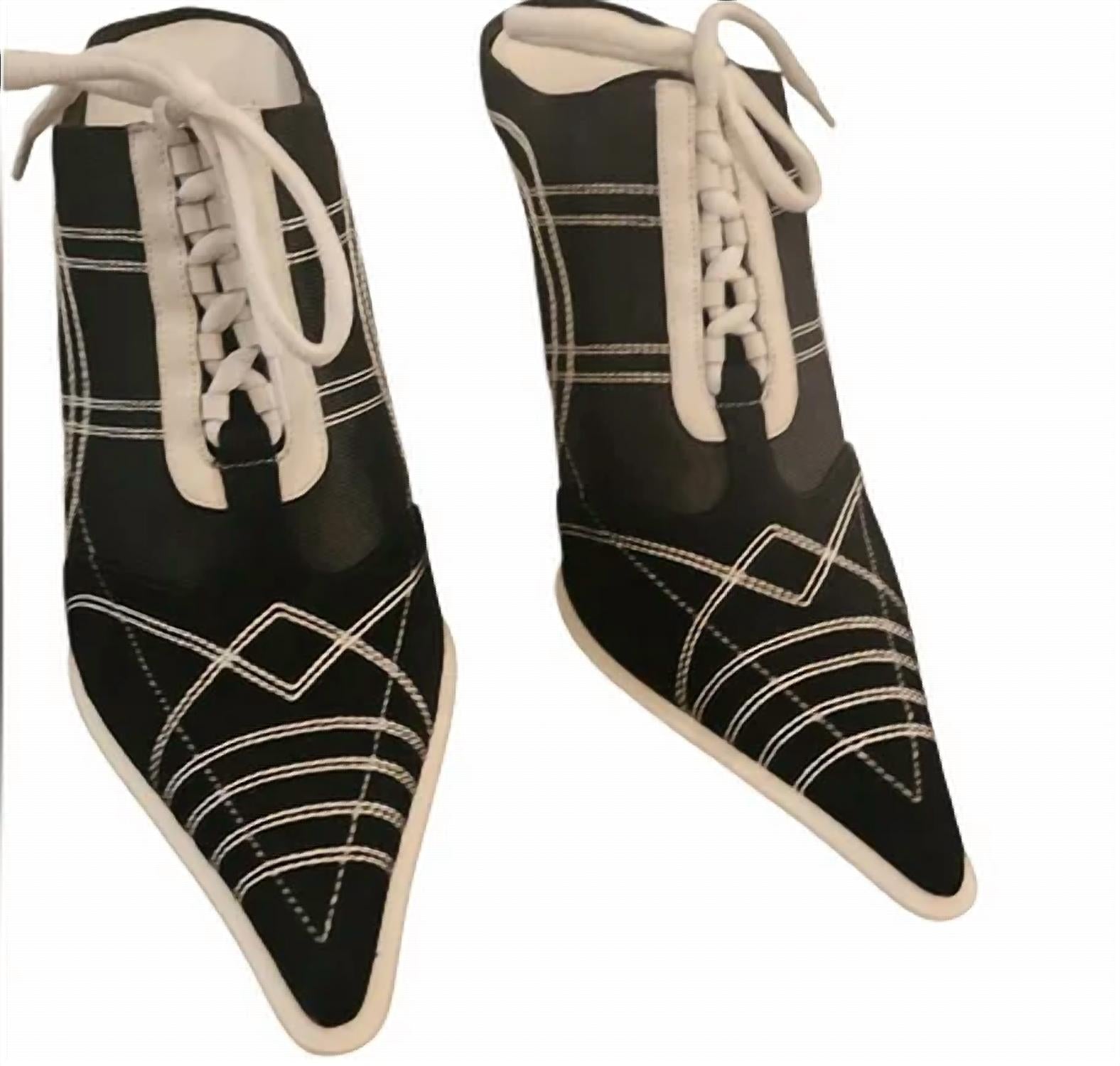 Step out in style with the Women's Lets Rally Mule by Jeffrey Campbell, a chic blend of black and white in a 90s-inspired design. Crafted from faux leather, these mules feature a sophisticated pointed toe and a striking stiletto heel that measures a high 3.5 inches. Perfect for game day or any spring occasion, these shoes are the ultimate fashion statement for the modern woman. Experience the elegance and allure of these must-have mules for your wardrobe.