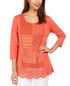JM Collection Women's Cotton Crochet Patchwork Top Orange Size X-Small