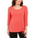 Stay ready for the week and more with this JM Collection top that pairs perfectly with your favorite jeans and polished trousers alike.| Approx. 27-1/2 long| Due to generous sizing| we suggest sizing down for the perfect fit| Scoop-neck| Hardware accents on side hem