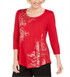 JM Collection Women's Metallic Print Tunic Top Red Size X-Small