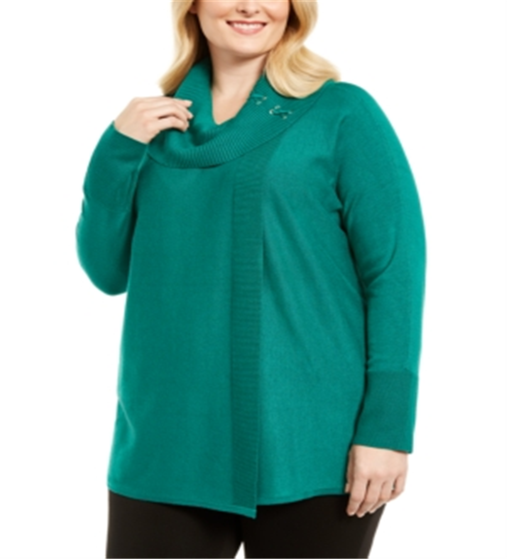 JM Collection Women's Plus Lace up Cowlneck Sweater Green Size 4X