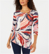 JM Collection Women's Printed Asymmetrical Top Red Multi Size Petite S