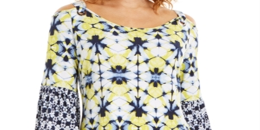 Lively prints| grommets and cold-shoulder cutouts create a vibrantly stylish feel on this petite top from JM Collection.| Relaxed fit| Designed to fit and flatter 5'4 and under frame| Scoop neckline| Cold-shoulder cutouts; grommet details at straps| 3/4-sleeves