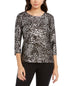 JM Collection Women's Printed Gel Dot 3/4 Sleeve Top Black-Silver Size Petite L