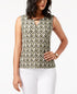 JM Collection Women's Printed Keyhole Jacquard Top Green Size S