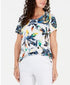 JM Collection Women's Printed Scoop Neck Top White Size Small