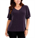 JM Collection Women's Puff-Sleeve Top Plum Noir Size M