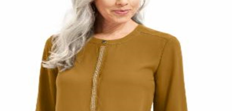 JM Collection Women's Studded Button Cuff Top Yellow Size Petite Medium