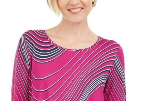 JM Collection Women's Swirl-Print 3/4-Sleeve T-Shirt Pink Size Small