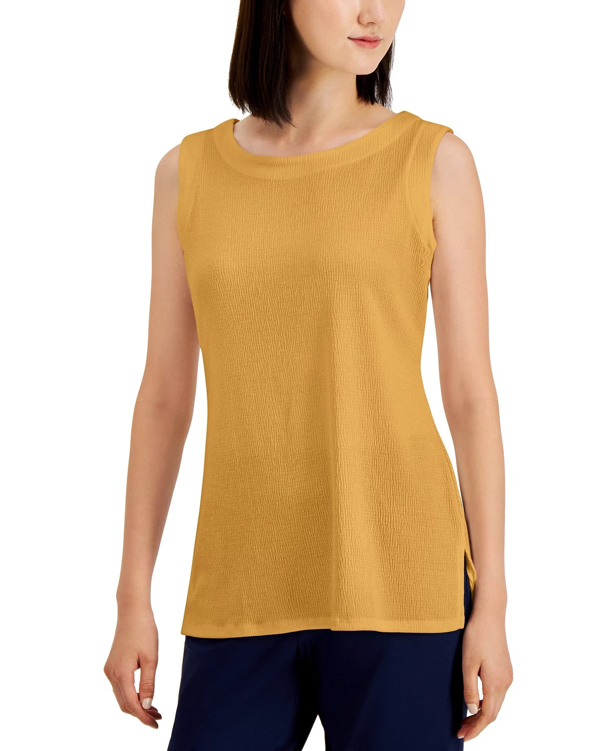 JM Collection Women's Textured Button Tank Top Gold Size Large