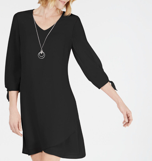 JM Collection Women's Tie-Sleeve Necklace Dress Black Size Small