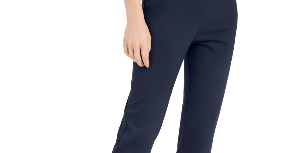 Ask a question about JM Collection Women's Tummy Control Hardware-Trim Ankle Pants Blue Size X-Large