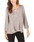 JM Collection Women's Twist Hem Keyhole Top Silver Size Small
