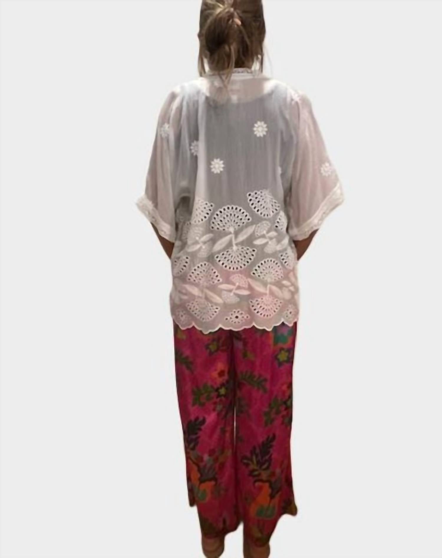 The perfect travel pants! Where comfort intersects with style and fun. The Lauchlen Pants are beautifully adorned with a vibrant floral pattern and crafted from a silk blend with a touch of spandex for added stretch. Comfort is key in these unique pants, which are sure to impress. Hand Wash.