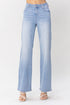 Experience the perfect blend of style and comfort with the High Waist With Pocket Details Wide Leg Denim Jeans by Judy Blue. This medium wash denim features a high rise and a wide leg fit that flares from the mid-thigh down to a generous leg opening, crafted with a cotton blend of 91% Cotton, 7% Polyester, and 2% Spandex. Designed with practical pocket details and a button closure, these jeans are perfect for your everyday spring wear. Care for your denim by turning inside out, washing in cold, and either air drying or tumble drying on low. Additional jeans detail: Front rise 11 1/4", Inseam 33", Leg opening for size 20W is 11". Model is 5'9" wearing size 1 with a 24" waist and 34" hip.